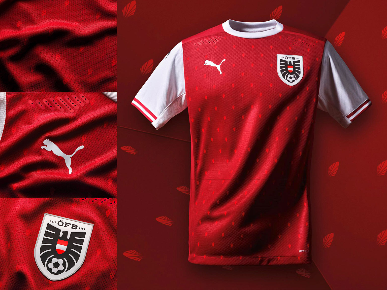- Efetivamente, em termos de significados nacionais, este trabalho da Puma traduz-se numa sublime homenagem à arte austríaca, dado contar com pequenos desenhos espalhados pelo tecido, em forma de tributo ao movimento da Secessão de Viena – movimento artístico nascido na parte final do século XIX –, fundado pelo artista austríaco Gustav Klimt. Aliás, a camisola em si, no que concerne ao grafismo, revela justamente um orgulho culturalmente identitário, devido ao facto de o seu estilo ser inspirado no típico uniforme alpino: de facto, as mangas brancas encaixam no vermelho do resto da camisola, à semelhança do que acontece com o «Dirndl», cujo modelo é reflexo dos habituais uniformes dos camponeses dos Alpes.